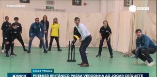 Primeiro-ministro britânico participa de treino de críquete e passa vergonha
