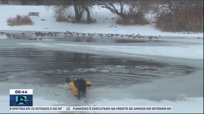 Nos Estados Unidos, onde diversas cidades enfrentam uma forte nevasca, um bombeiro arriscou a vida para salvar um cachorro. Nas imagens, o bombeiro amarra uma corda e entra no lago parcialmente congelado para tirar o cãozinho de lá. O cachorro se chama Bob e, segundo os donos, adora brincar na água.