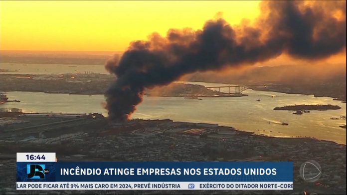 Grande incêndio atinge armazém na região de Nova Jersey (EUA)
