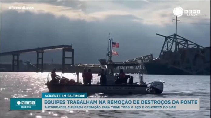 Cerca de uma semana após o acidente com uma embarcação, equipes atuaram na remoção do aço e concreto da ponte Francis Scott Key, em Baltimore, nos Estados Unidos. A estrutura desabou na última terça-feira (26), depois que um navio de carga colidiu com um dos pilares. Cada parte será retirada da água por uma espécie de guindaste e inspecionada com cautela em terra firme. Seis pessoas morreram no acidente e a busca foi encerrada devido à baixa temperatura da água, que anula a chance de sobreviventes.