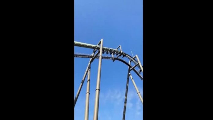 Montanha-russa lotada emperra e deixa ocupantes de ponta-cabeça a quase 50 metros de altura