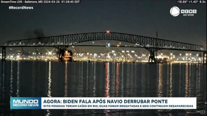 O Governo dos Estados Unidos vai investigar as causas do desabamento da ponte Francis Scott Key, em Baltimore, atingida por um navio na madrugada desta terça-feira (26) . Durante entrevista coletiva, o presidente americano, Joe Biden , falou que cerca de 15 mil empregos estão em risco devido ao acidente. Equipes estão trabalhando para retomar o fluxo da ponte e encontrar as seis pessoas que seguem desaparecidas.