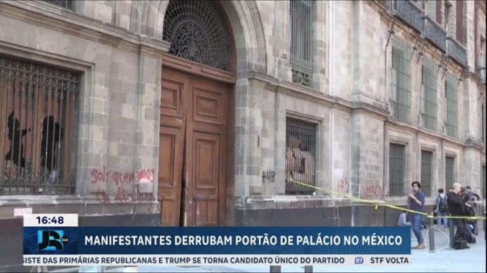 No México, manifestantes encapuzados usaram uma caminhonete para derrubar o portão do Palácio Nacional, sede do Governo Federal. O grupo protestava pelo desaparecimento de 43 estudantes, há quase dez anos, em uma cidade no sudoeste do país. Eles exigiam uma reunião com o presidente mexicano, que concedia uma entrevista coletiva no momento da manifestação.