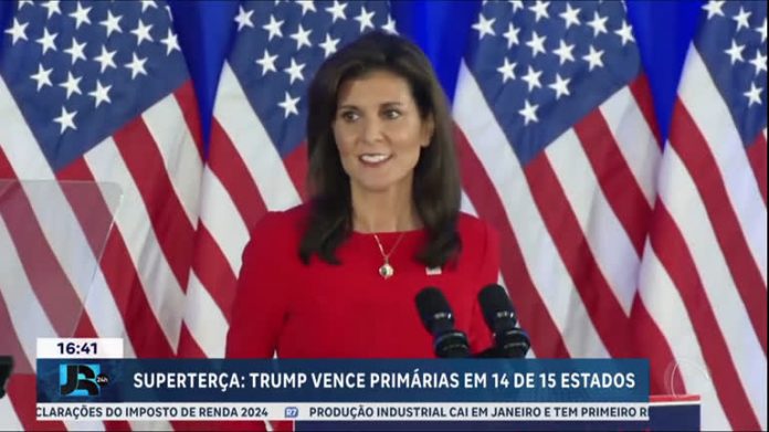 O ex-presidente Donald Trump venceu as primárias do Partido Republicano na chamada superterça. De 15 estados, apenas um escolheu a adversária de Trump, Nikki Haley. Hoje, depois da derrota, a ex-embaixadora americana na ONU desistiu da corrida presidencial. Trump agradeceu aos eleitores e convidou os apoiadores de Haley a se juntarem a ele. Do lado democrata, quem recebeu a maioria dos votos foi Joe Biden.