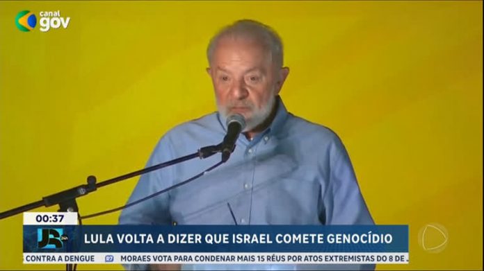Após gerar uma crise diplomática entre Brasil e Israel, o presidente Lula afirmou novamente que o governo israelense pratica genocídio na Faixa de Gaza. A fala aconteceu durante um evento da Petrobras no Rio de Janeiro. Esta foi a primeira vez que Lula falou sobre o assunto desde a entrevista da semana passada, na Etiópia. O presidente, que foi declarado ‘persona non grata’ em Israel após comparar a ação militar em Gaza ao Holocausto, defendeu a criação de um estado palestino livre e soberano, e que possa viver em harmonia com o estado de Israel.