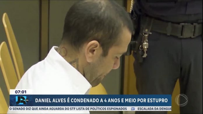 O jogador Daniel Alves foi condenado a 4 anos e 6 meses de prisão por estuprar uma mulher em casa noturna de Barcelona (Espanha). Atleta ainda terá que pagar o equivalente a R$ 800 mil para a vítima.