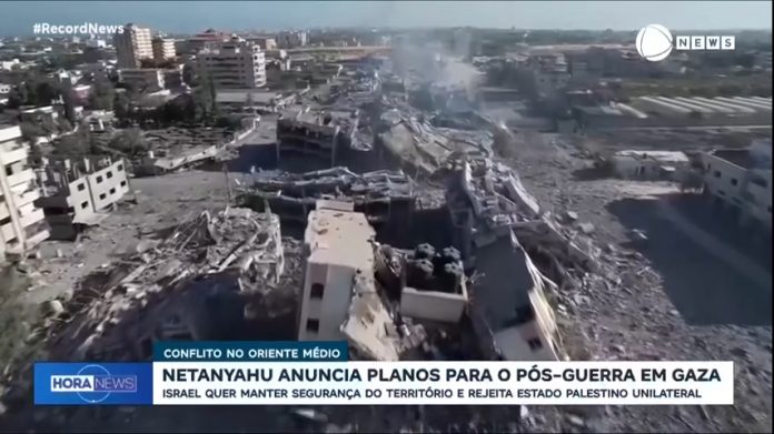 O primeiro-ministro de Israel , Benjamin Netanyahu, apresentou pela primeira vez um plano para a Faixa de Gaza, quando a guerra com o grupo terrorista Hamas acabar . O documento, divulgado nesta sexta-feira (23), revelou os desejos do país do Oriente Médio em manter o controle de segurança das terras a oeste da Jordânia — que inclui a Faixa de Gaza e a Cisjordânia. Inclusive, para o território em que o povo palestino deseja criar um estado próprio , Netanyahu declarou querer a “desmilitarização” e o “fim da radicalização”. O documento não detalhou quando o plano será implementado, ou a previsão para o fim do conflito. Na última quinta-feira (22), o parlamento de Israel rejeitou reconhecimento unilateral de estado palestino .