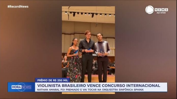 Um violinista brasileiro venceu um importante concurso internacional de música nos Estados Unidos e ganhou R$ 250 mil. Nathan Amaral, de 28 anos, foi um dos vencedores do Concurso Sphinx, realizado na cidade de Detroit, que premia jovens negros e latinos que tocam instrumentos clássicos de corda. Os finalistas foram convidados a tocarem na orquestra sinfônica que dá nome ao concurso. O brasileiro recebeu um prêmio de 50 mil dólares, o que, na cotação atual, é o equivalente a R$ 250 mil. Nathan é do Rio de Janeiro e começou a aprender violino aos 12 anos.