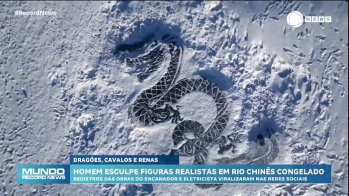 Um homem viralizou nas redes sociais por esculpir desenhos realistas em um rio congelado na China . A técnica consiste em retirar o excesso de neve de cima da superfície e deixar só a quantidade necessária para formar as imagens.